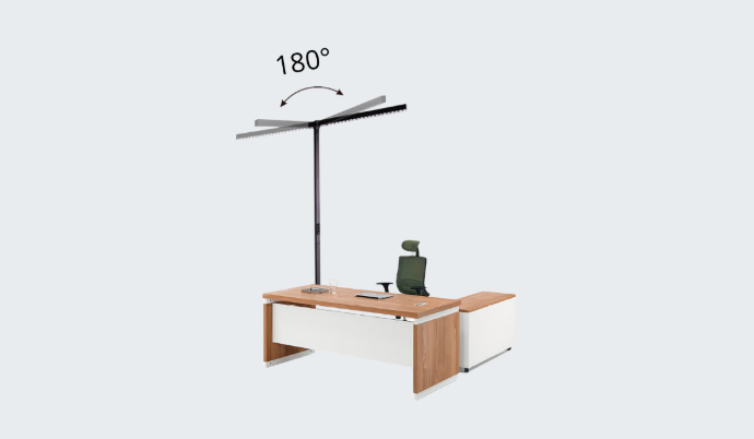 La tête rotative des luminaires EQUINOXE 2 offre une flexibilité totale en permettant un ajustement de l’éclairage à 180°, vous garantissant une répartition précise et homogène de la lumière, où vous en avez besoin. Cela en fait une solution idéale pour des espaces de travail partagés, où chaque utilisateur peut personnaliser son éclairage.
