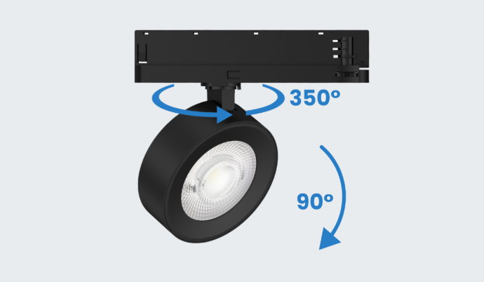 Cette grande amplitude de mouvement assure une mise en lumière ciblée et maîtrisée, idéale pour l’accentuation des produits et des zones stratégiques.