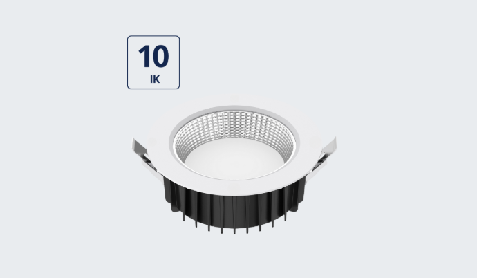 Avec une certification IK10 (20 joules), ils offrent le plus haut niveau de résistance aux impacts. Ils sont ainsi particulièrement adaptés aux espaces publics, zones de fort passage, infrastructures collectives ou sites sensibles, où la sécurité et la durabilité des équipements d’éclairage sont primordiales.