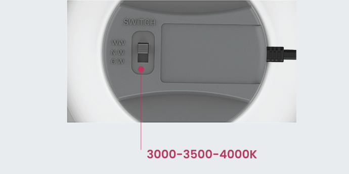 - Température de couleur ajustable directement sur le luminaire via un bouton intégré : 3000 K | 3500 K | 4000 K, permettant d’ajuster rapidement l’éclairage selon l’usage ou les préférences architecturales.