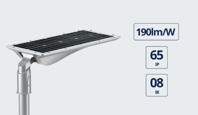 Streetlights LED solaires hybrides, alliant énergie solaire et raccordement réseau pour un éclairage fiable et continu des chemins, parkings, zones publiques et aménagements urbains.