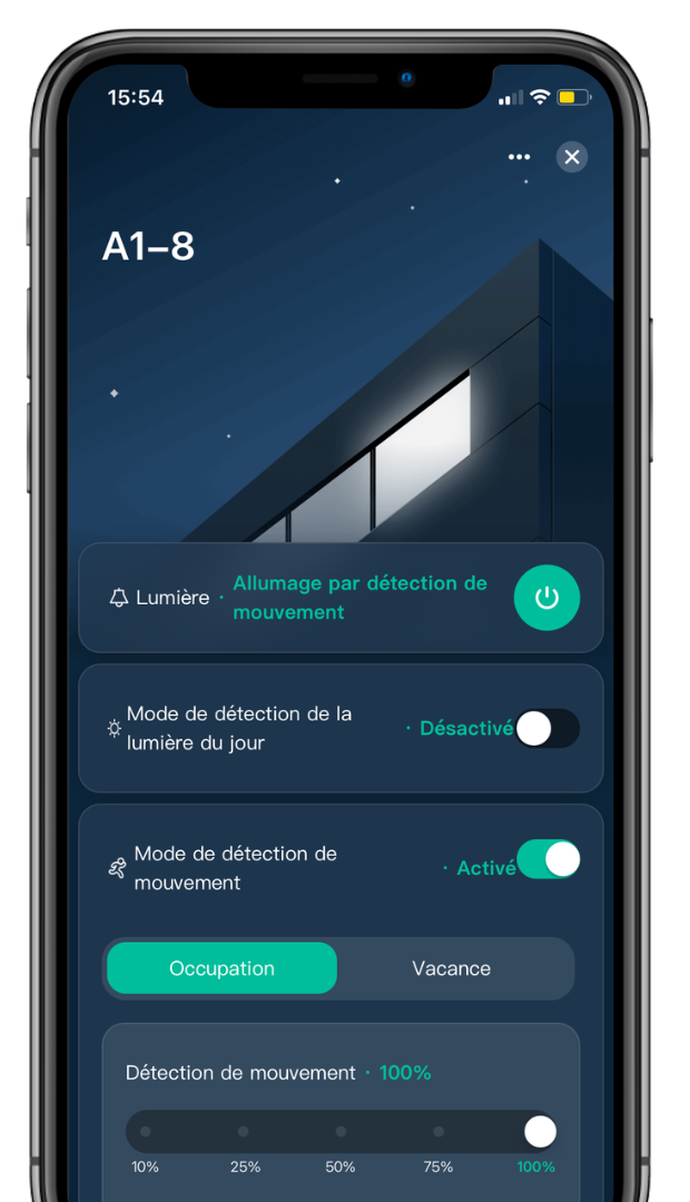 L’application mobile iZy Connect offre une expérience simple, rapide et intuitive pour piloter instantanément l’éclairage de votre bâtiment.