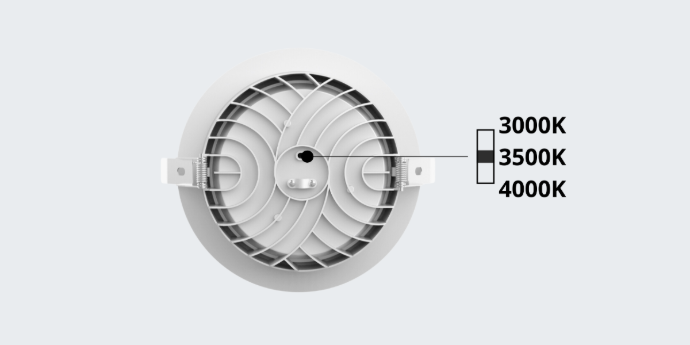 Un sélecteur intégré directement sur le luminaire permet d’adapter la température de couleur selon les besoins du projet ou les ambiances recherchées :