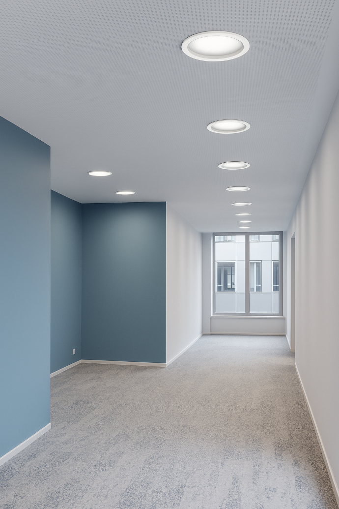 Downlights LED idéals pour l'éclairage général des circulations y compris dans les immeubles grande hauteur (IGH).