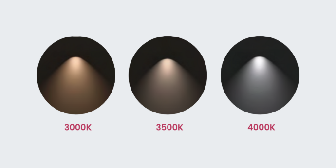 La température de couleur est réglable (3000K, 3500K ou 4000K), permettant d’adapter l’ambiance lumineuse selon les usages et les besoins du projet.