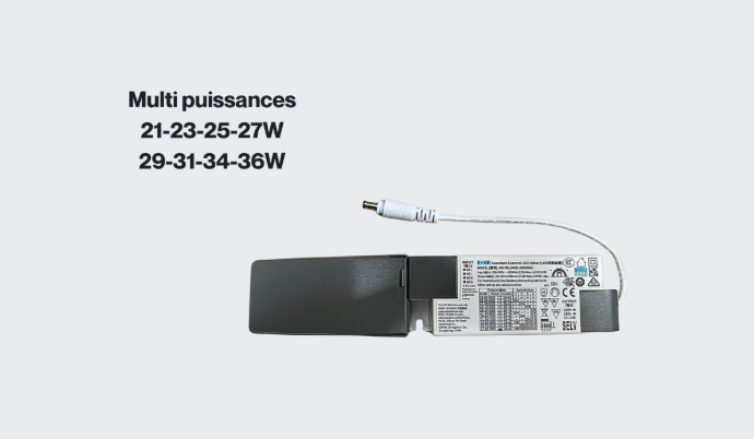 Ces dalles sont équipées d’un driver à puissance réglable permettant d’ajuster la consommation entre 21 W et 36 W via un interrupteur à curseur. Cette fonctionnalité offre une flexibilité maximale pour adapter le flux lumineux aux besoins réels de chaque espace, tout en contribuant à optimiser la performance énergétique.